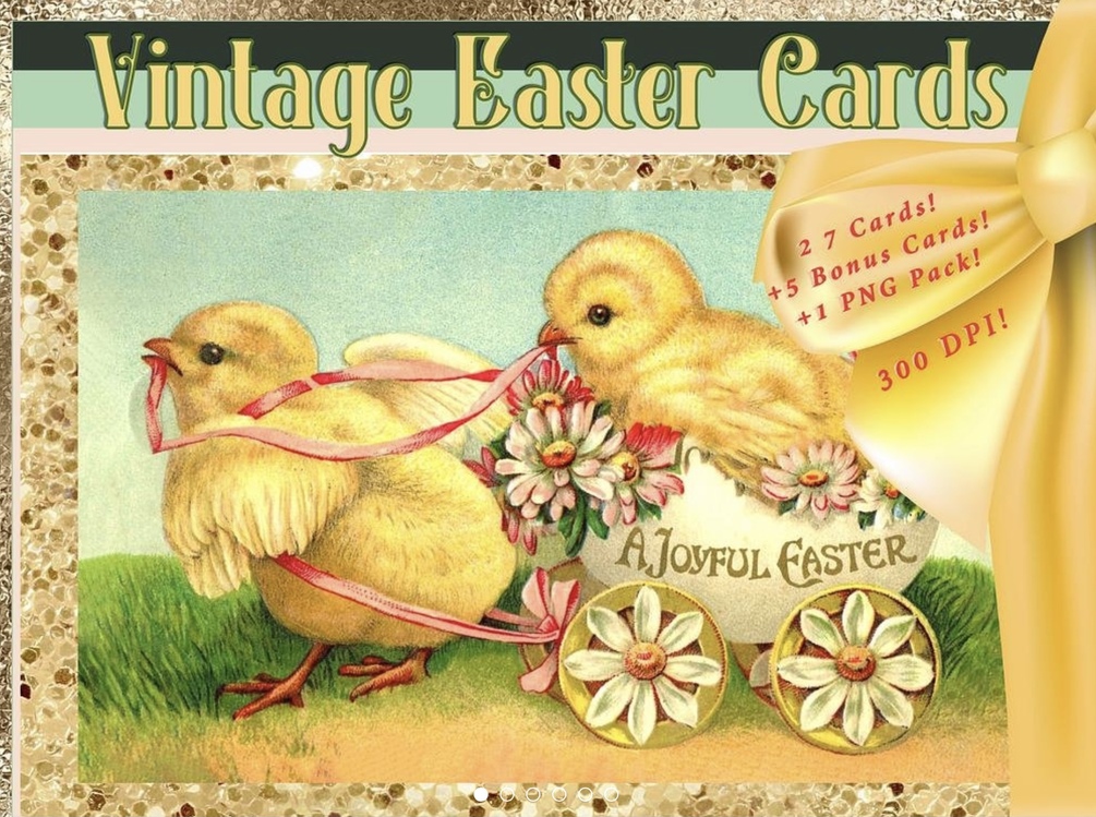 1 FREE Bonus PNG Vintage Easter Card Pack with 11 Vintage Illustrations!